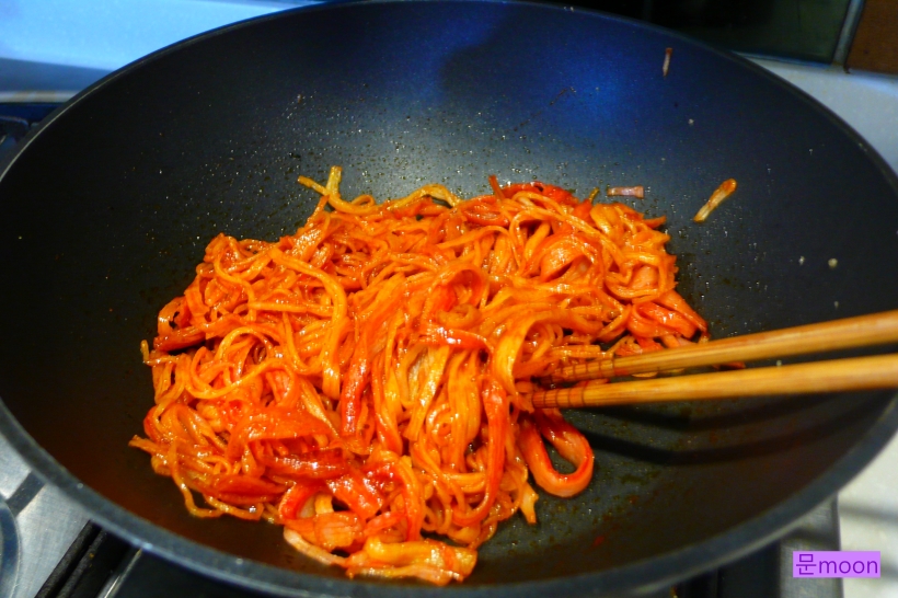 케찹, 고추장, 참기름을 잘 섞어 넣어주고 볶아줍니다.