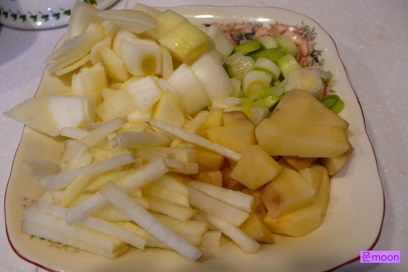 감자1개, 양파1/4개, 무 한토막