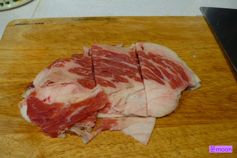 차돌박이를 적당한 크기로 잘라줍니다.
