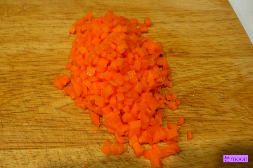 당근을 잘게 썰고 냉이도 썰어놓습니다.
