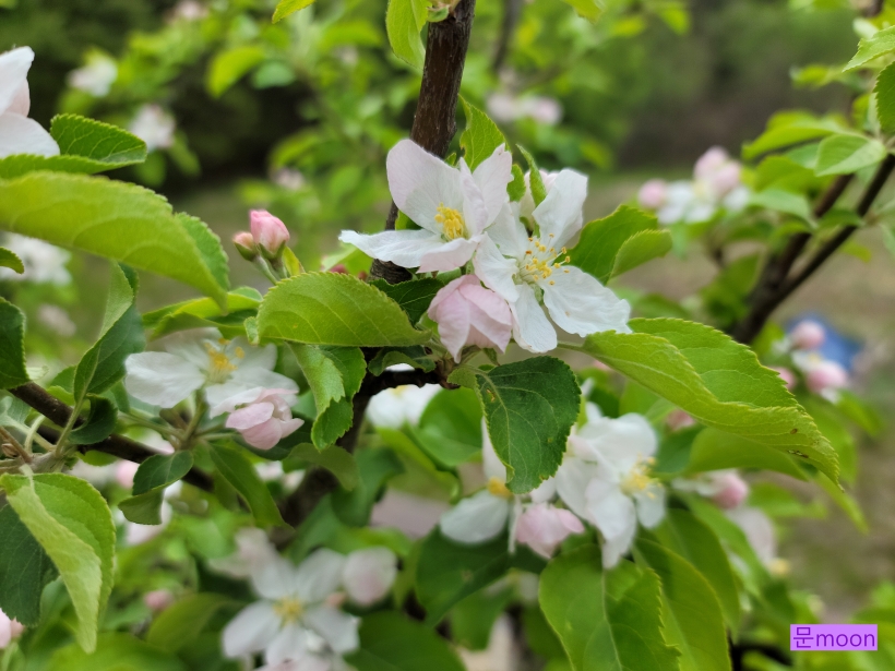 사과나무는 잎이 나오고나서 꽃망울이 나옵니다.