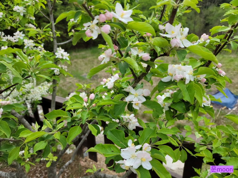 정원의 살구꽃 자두꽃 배꽃이 지고나니 이제 사과꽃이 한창 입니다.