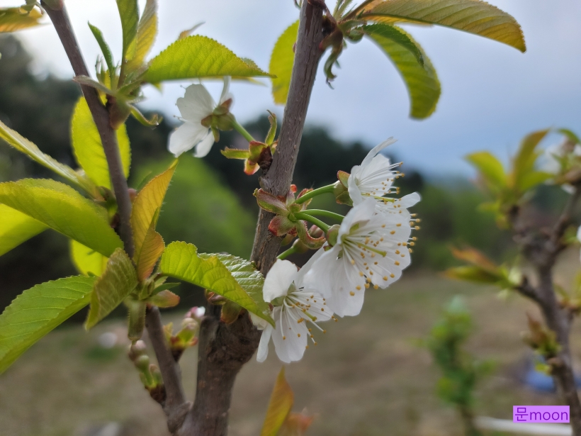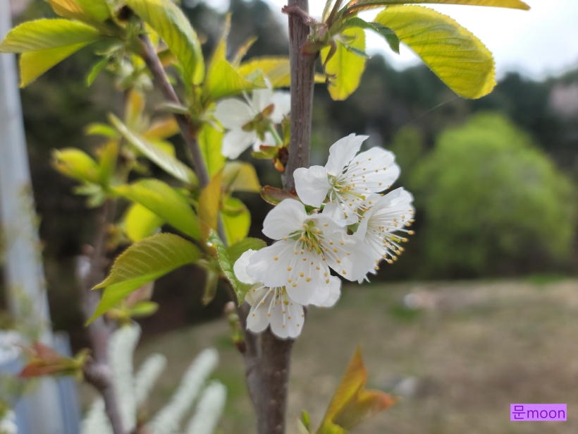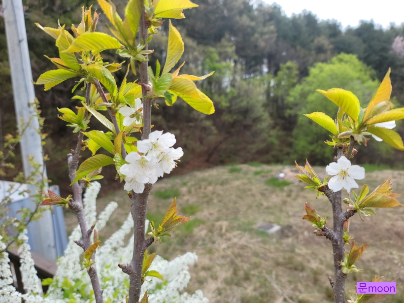 체리나무는 잎이 먼저 나오고 중간정도 자랐을때 꽃이 피네요.