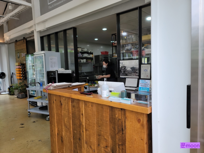 맛있게 먹고서 주변 건물에 문호리 리버마켓에서 팔던 품목들이 코로나로 인해서