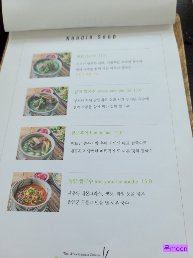 퍼포(11,000원), 갈비쌀국수(13,000원), 분보후예(12,000원), 똠얌쌀국수(15,000원)을 하나씩 주문했습니다.