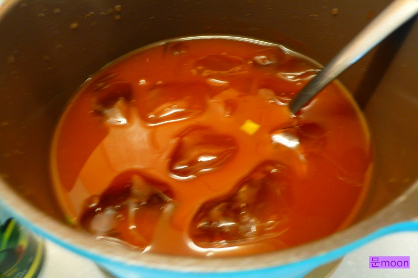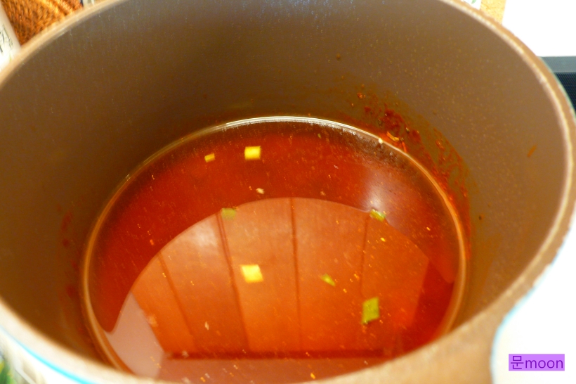 냄비에 물300ml정도만 넣고 라면스프(건더기스프, 분말스프)를 다넣고 잠시 끓인후 식혀줍니다.