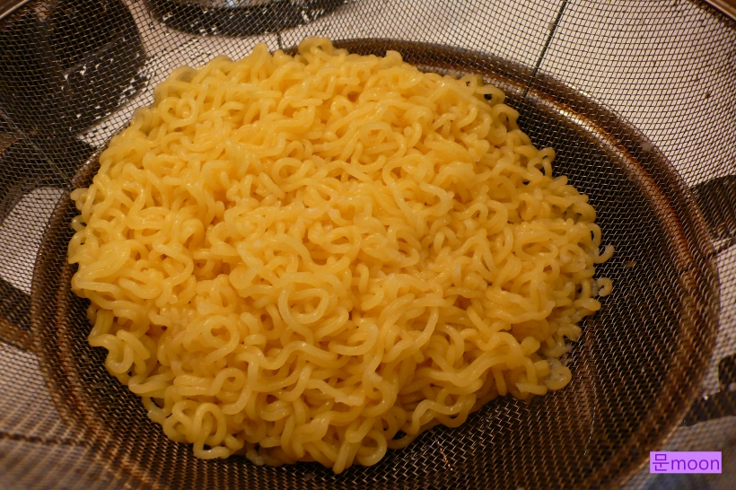익힌 면을 찬물에 씻어 물기를 뺍니다.