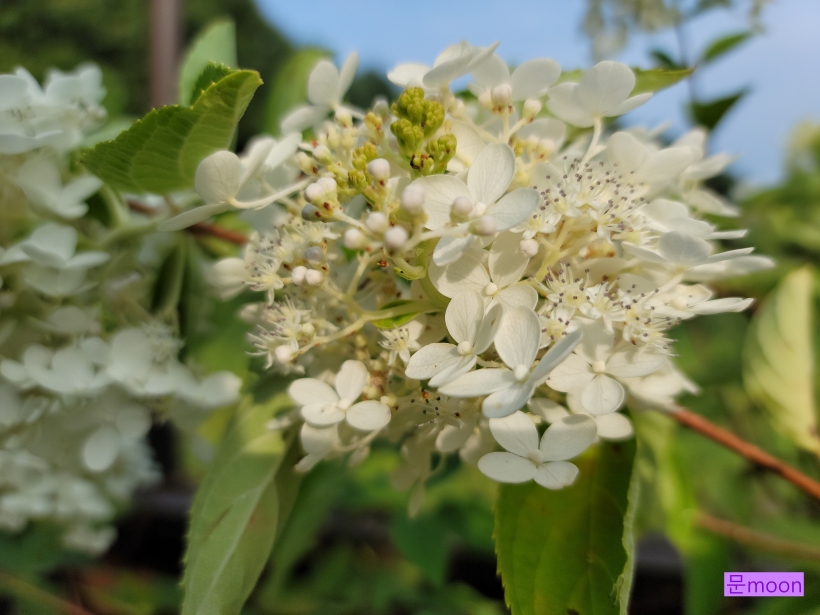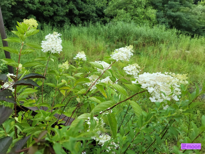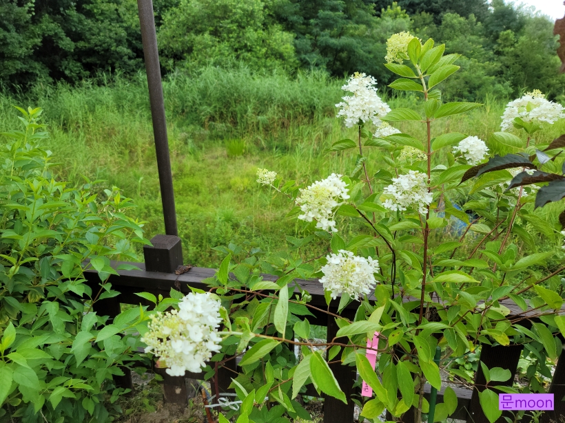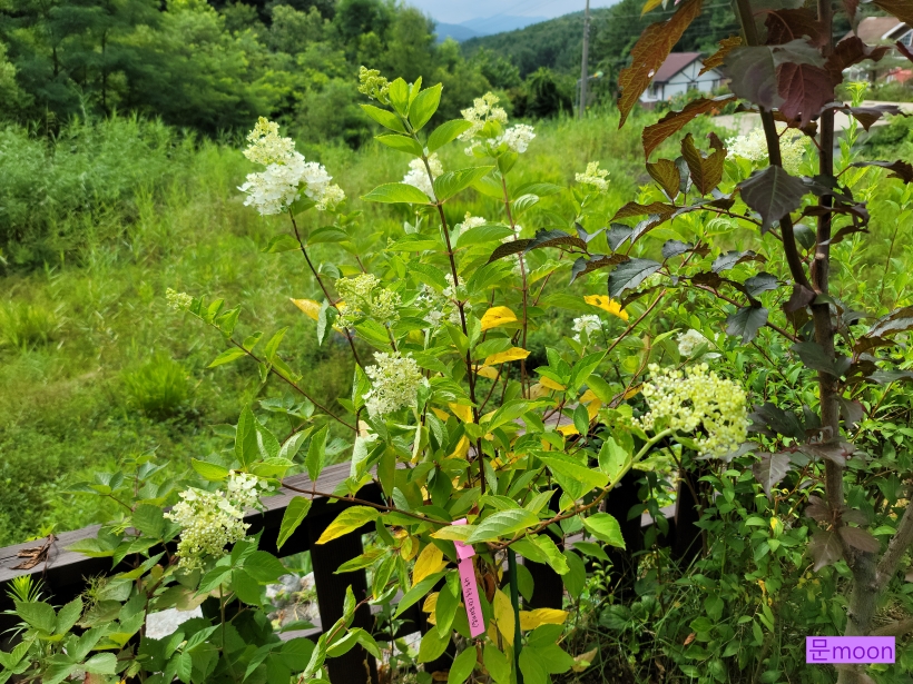 여름에 피는 나무수국 라임라이트가 하얗게 꽃을 피우고 있습니다.