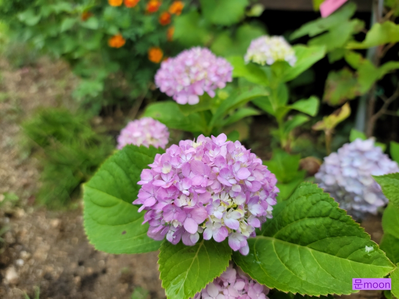 토양에 따라 분홍 청색으로 피고 봄가을로 두번에 걸쳐 꽃피운다고 합니다.