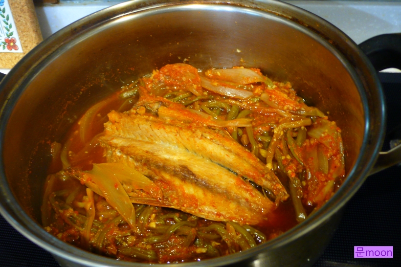 고등어조림은 자주 해먹지는 않는데 냉동해둔 고구마줄기가 있어서.. 아주 맛있다는 이웃의 말을 듣고..