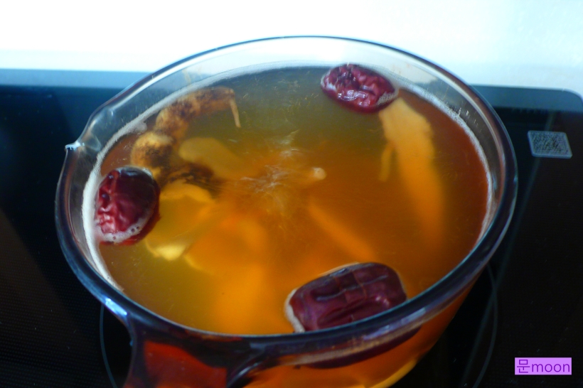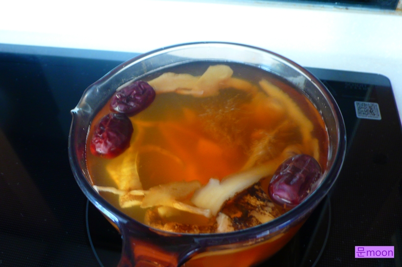 저는 기관지가 약하기에 정원의 도라지를 캐어 말려놓은것에 생강, 대추, 감초를 더해 뭉근히 끓여봤습니다.