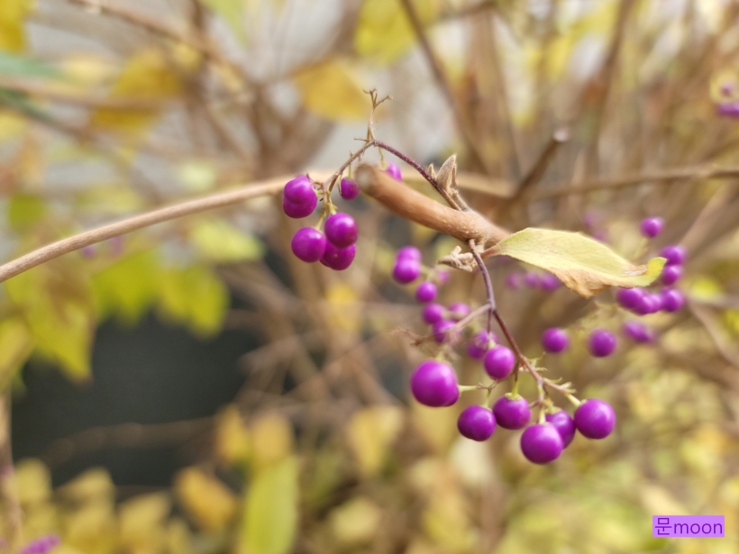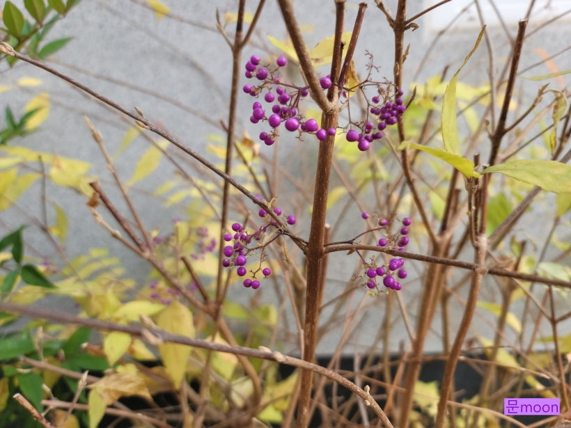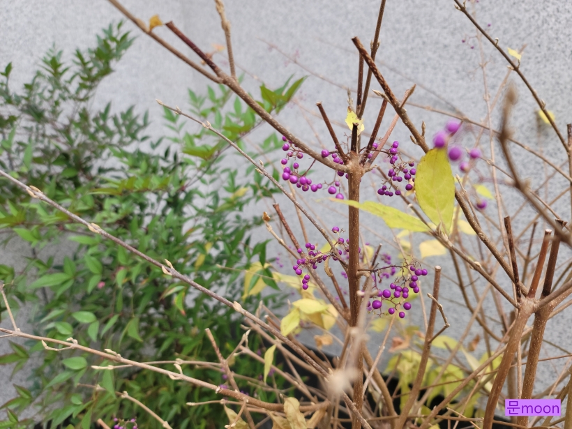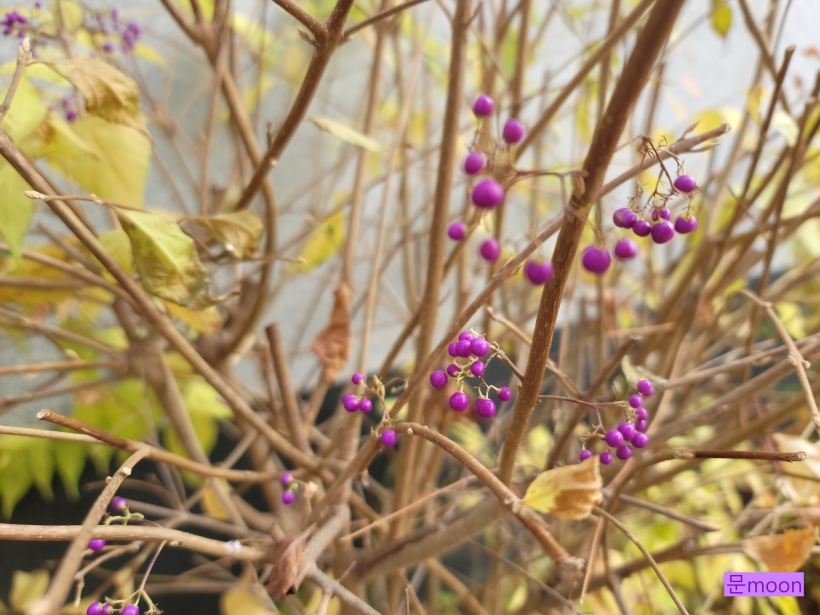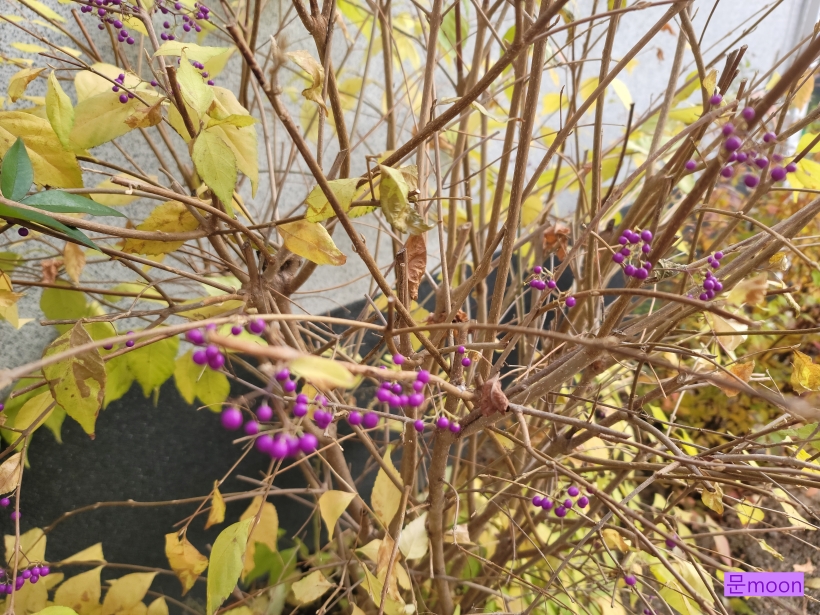 잎이 낙엽이 져서 떨어지니 보라구슬이 돋보이네요.