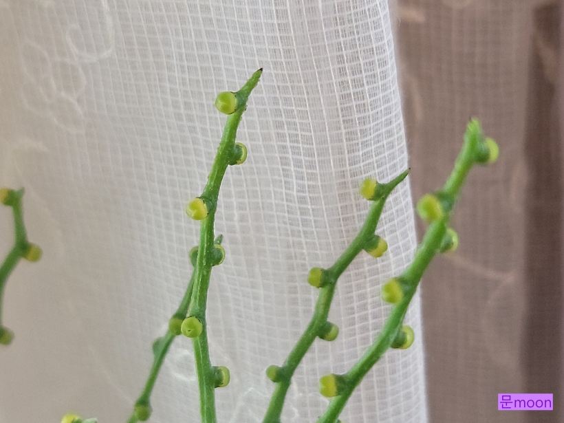 요즘 꽃대를 몇개 올리고 초록알갱이가 생겼다가 살짝 노래지기 시작했습니다.