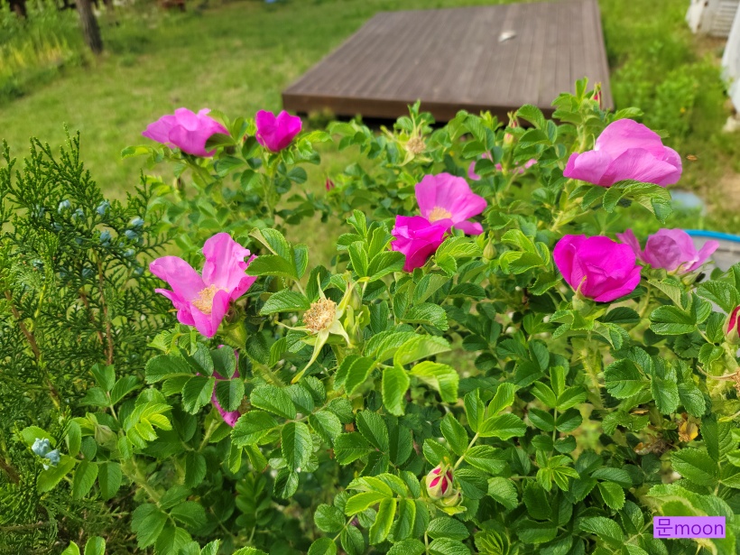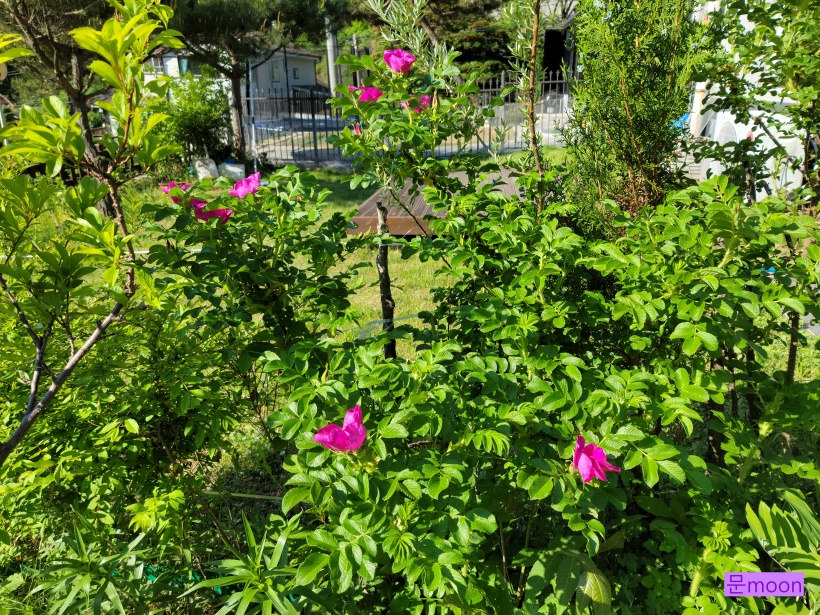 몇년전 씨앗 심어 자란 해당화들이 꽤 자라서 올해도 꽃을 많이 피워주고 있습니다.