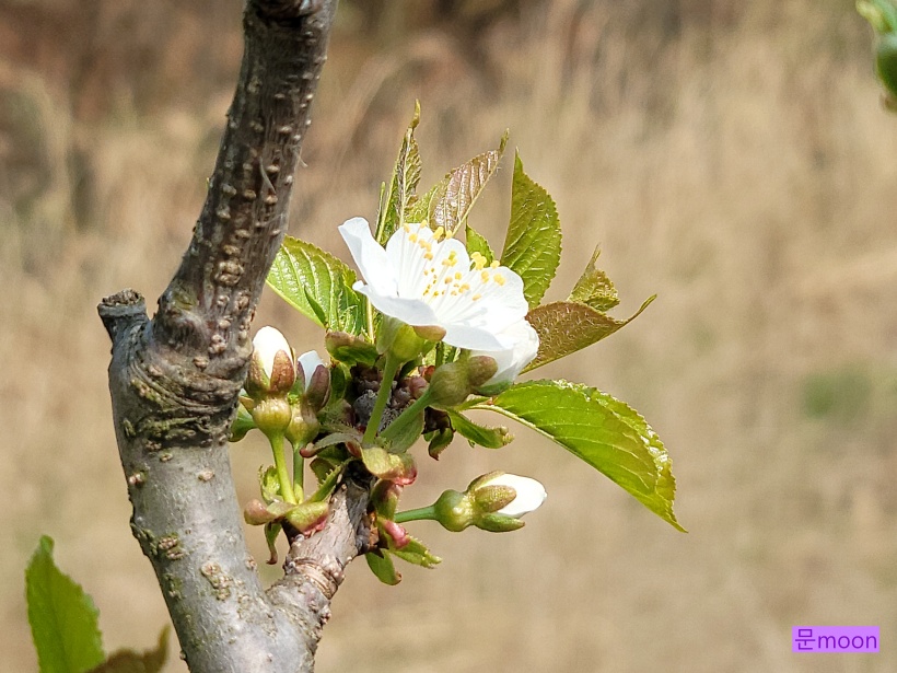 체리꽃은 잎이 나오면서 꽃도 같이 나옵니다.