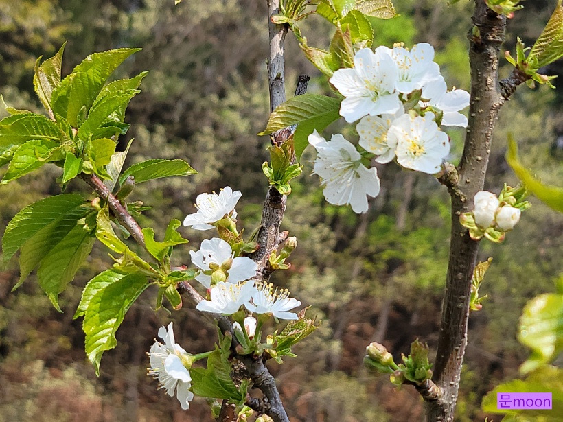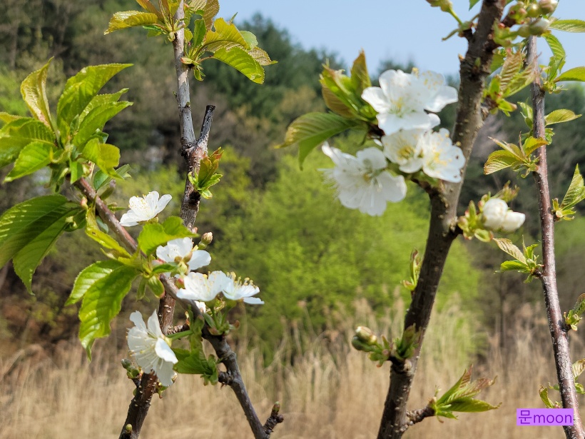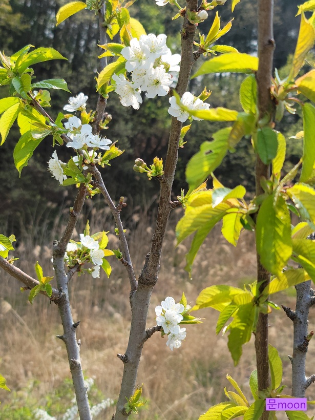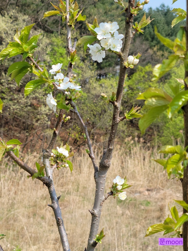 꽃이 다른 유실수꽃과 비슷하지만 체리꽃은 잎과 함께 피니 구별이 될것 같습니다.