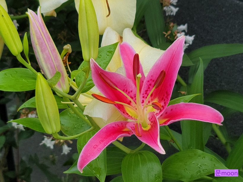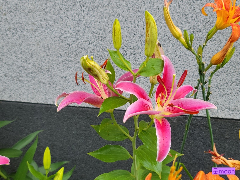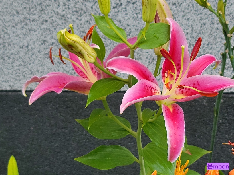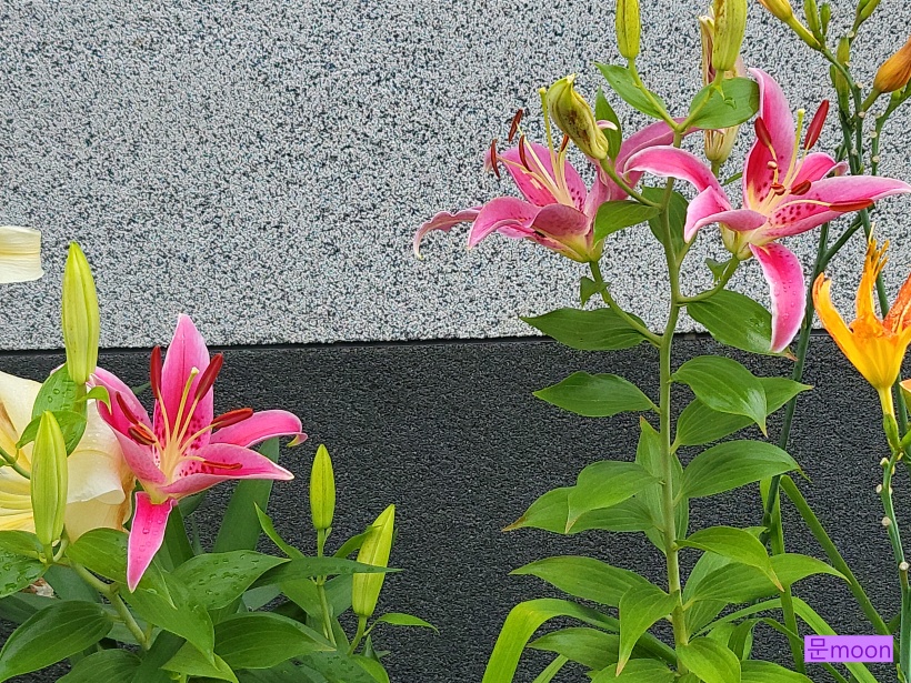 정원의 백합 중에서 꽃이 크고 향이 좋은 오리엔탈 백합 2종류가 요즘 한창 꽃피우고 있습니다.