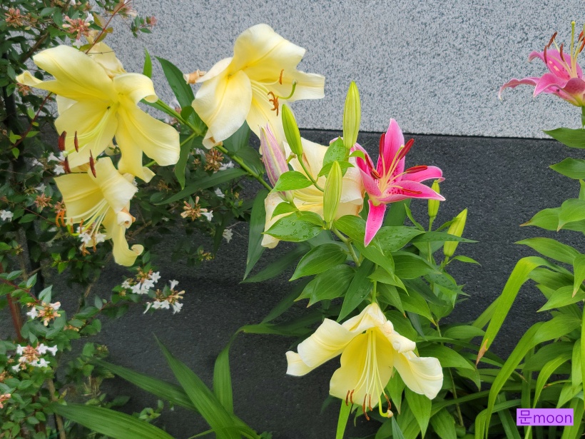 노란 백합은 콘카도르 인데 꽃이 커서 잦은 비에 무거운듯 고개를 숙이고 있네요.