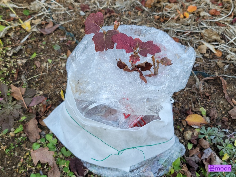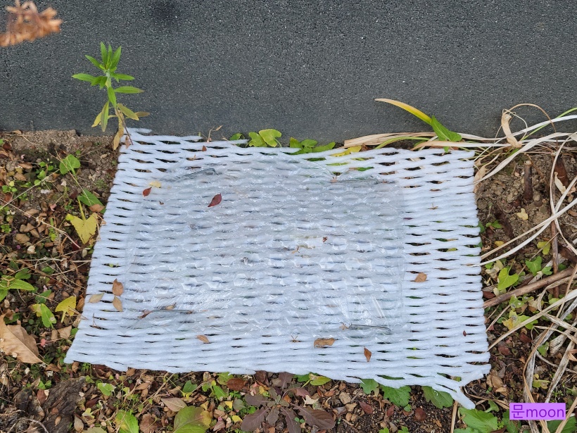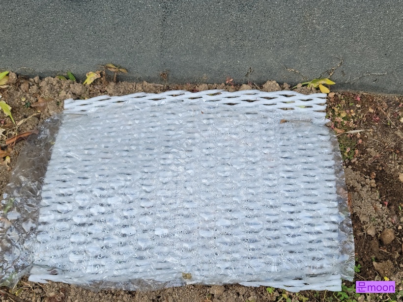 그래서 샤인머스캣만 비닐뽁뽁이로 감싸주었습니다. 아래에 뿌리보온재도 덮어주구요..