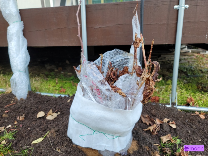 올해 꽃을 보지못했습니다. 그래서 얘도 비닐뽁뽁이와 보온재천으로 가지를 감싸주었습니다.