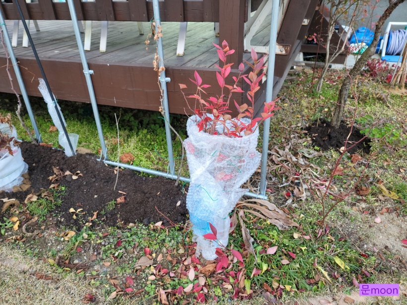유실수들은 뿌리부분에 거름을 덮어주었고 노지월동이 어려운 식물들은 이렇게 월동준비를 마쳤습니다.