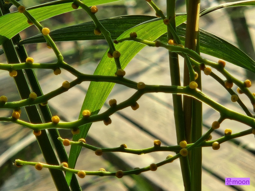 우리집 테이블야자가 꼭 겨울철 이맘때면 꽃같지도않은 노란 알갱이 같은 꽃을 피워줍니다.
