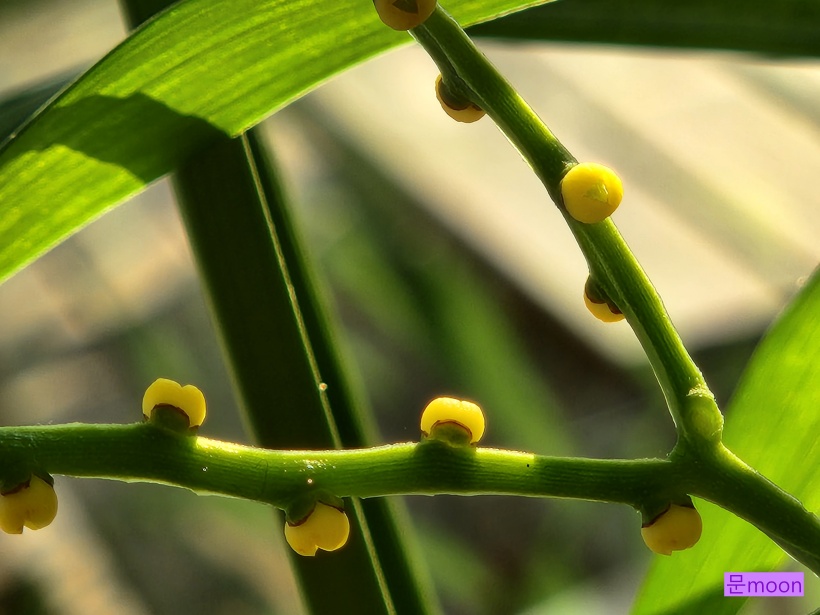 긴 꽃줄기 끝부분이 가지를 치고 초록알갱이가 생겨나고 점차 노랗게 익어갑니다.