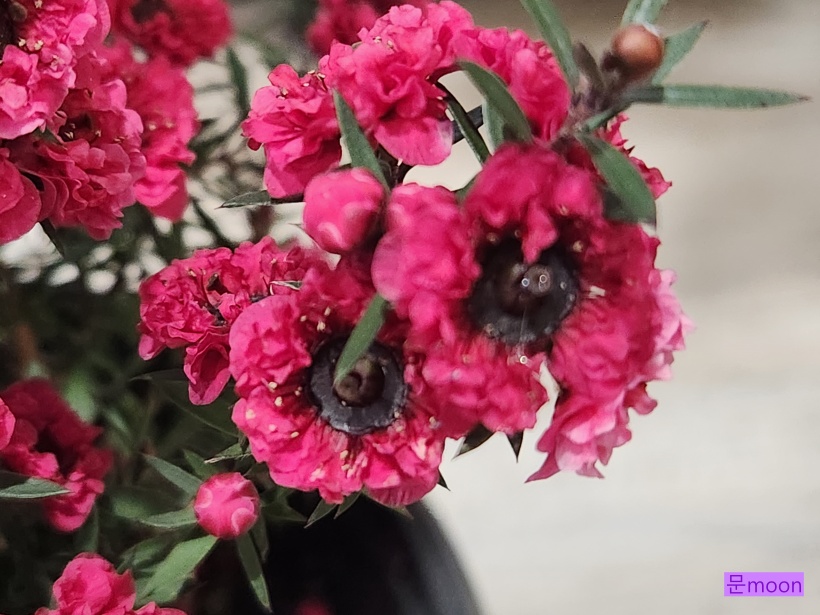 하아신스를 사러 들렀는데 좁은 잎에 귀여운 붉은꽃이 많이 피어있는 호주매화가 눈에 들어와서