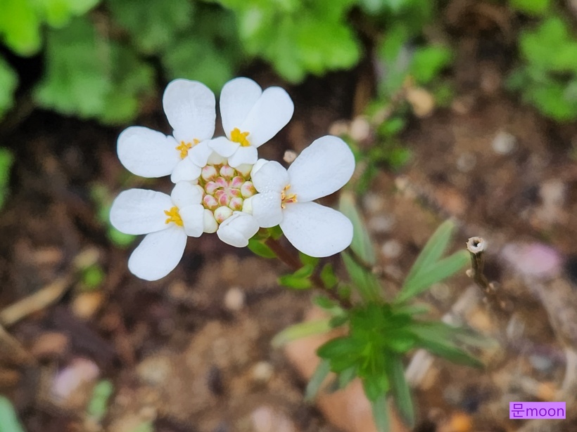4개의 하얀꽃잎에 노란꽃술.. 가운데 꽃망울도 앙증맞습니다.