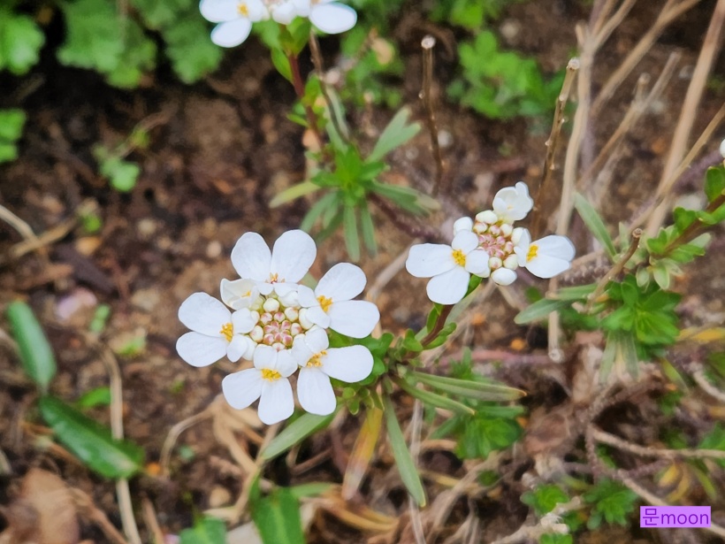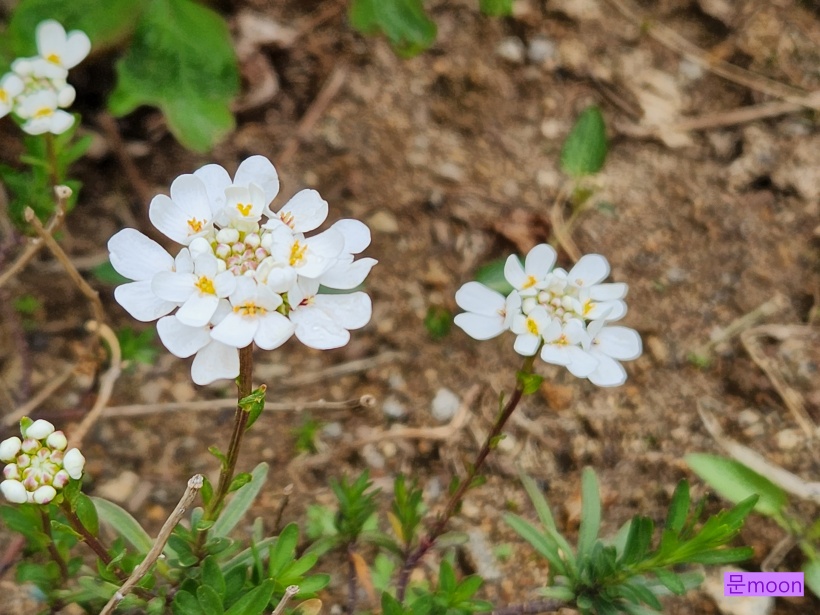 이메리스는 꽃송이 둘레에서 안쪽으로 피어들어가는데 하얀꽃잎에 노란 꽃술이 참 특이한것 같아요.