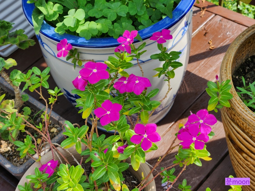 이름대로 매일매일 피고지는 일일초가 뜨거운 햇살과 장마비 흠뻑 맞고 제대로 꽃을 피우고 있습니다.