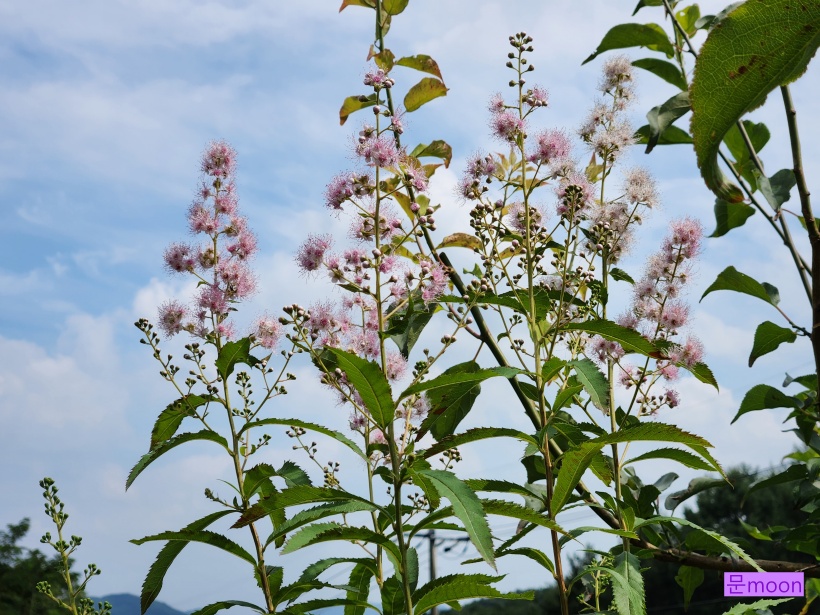 키가 크기도 하고 가지끝에 분홍꼬리 같은 꽃망울이 생기기에 꽃을 한꺼번에 피우지않고