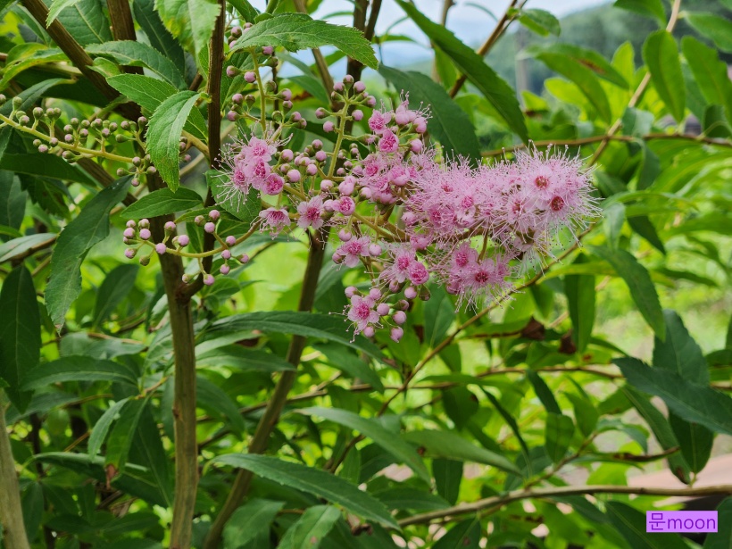 삽목5년차인 꼬리조팝이 요즘 한창 분홍털이 보소소한 꽃을 피우고 있습니다.