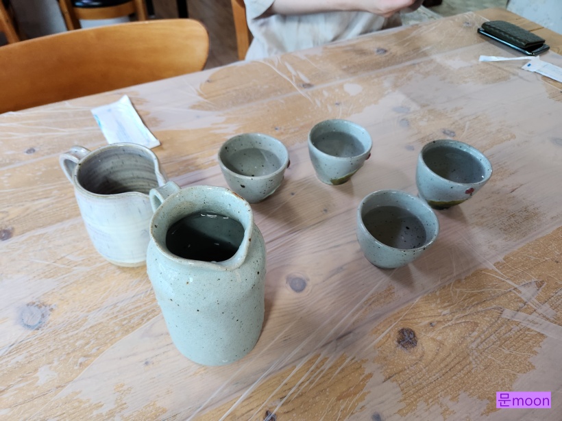 물이 나왔습니다. 직접 만든 도지기그릇인지..