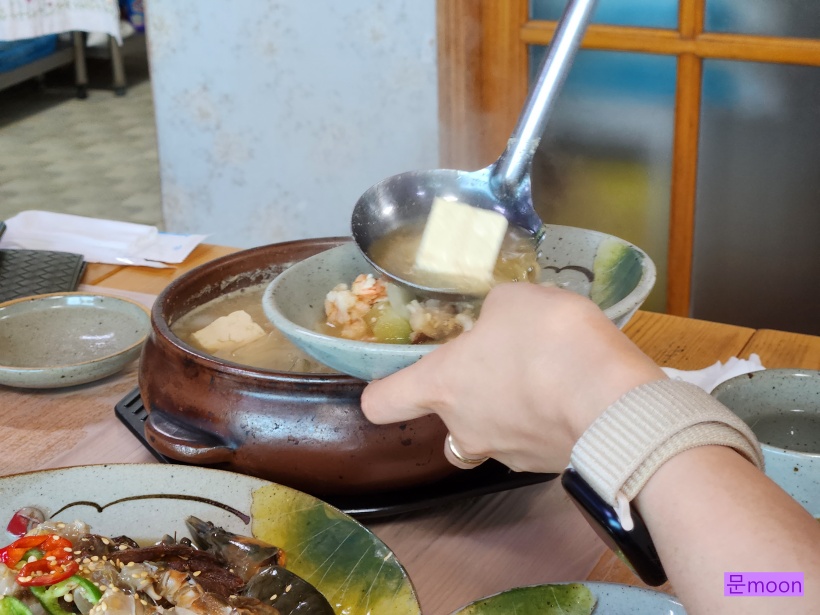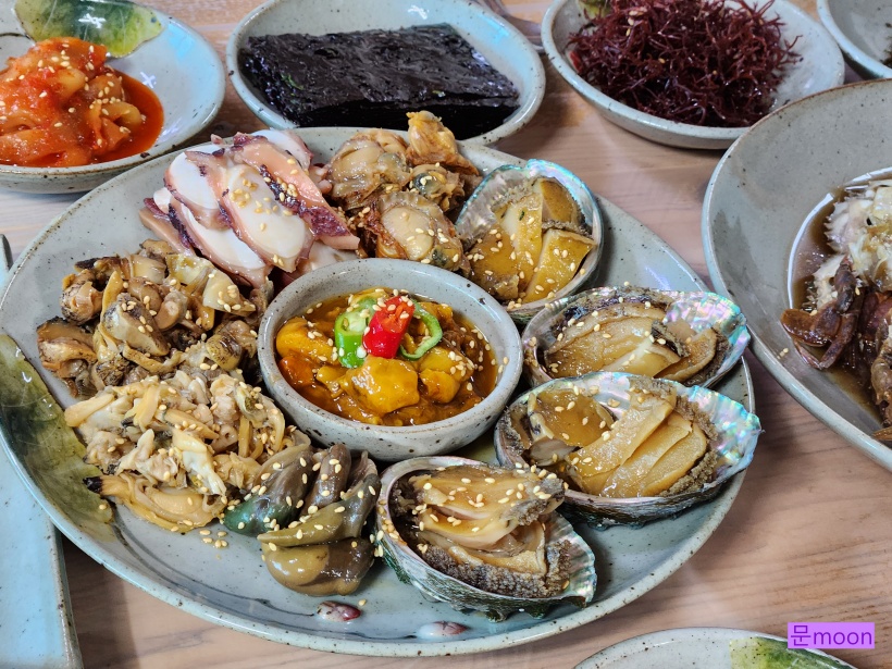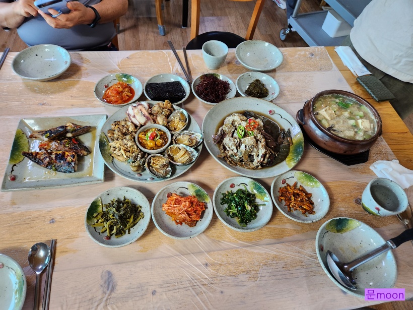 전복, 문어, 돌게 등 계절해산물과 된장찌개, 고등어구이가 나오는군요.