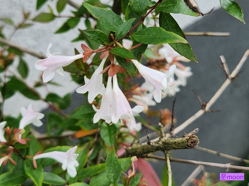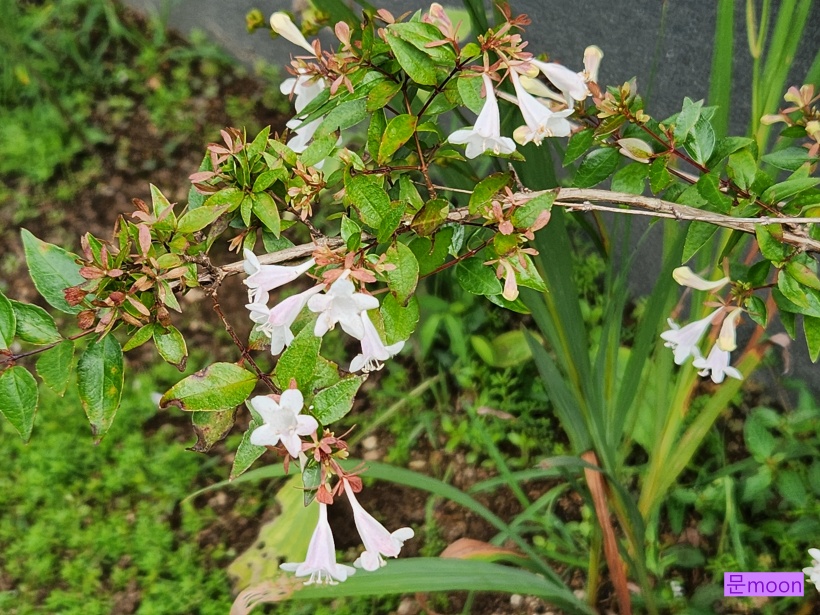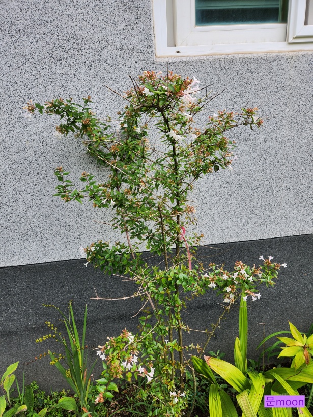 향기좋고 작은 종 같은 하얀꽃이 늦봄부터 가을까지 꽃피워주는 꽃댕강나무가