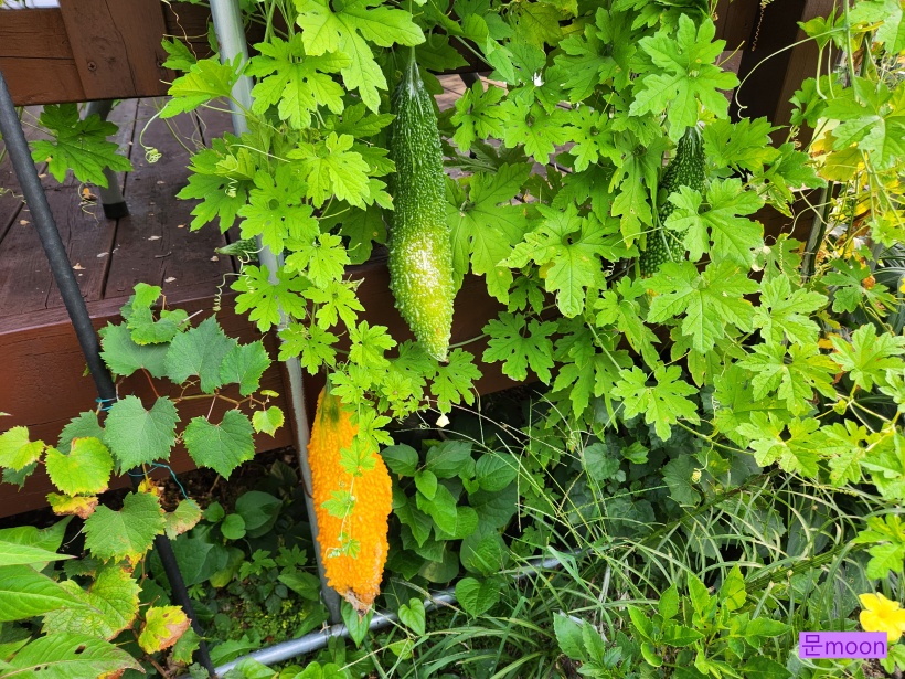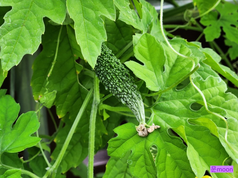 여주는 암꽃 수꽃이 한그루에 피는데 처음엔 한동안 수꽃만 많이 피어 덩굴만 뻗어나가고 열매는 열리지않았는데