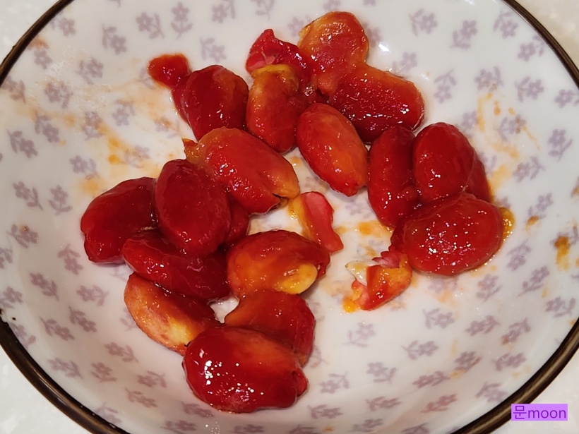 보통 초록열매를 따서 볶음요리나 차로 만드는데 노랗게 익으면 빨간씨앗이 달큰하다고 해서 노랗게 익혀보기로..
