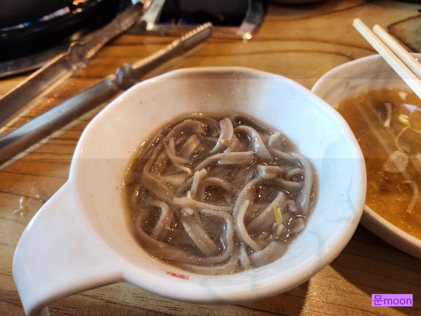 여기는 메밀의 고장 이라 샤브샤브 칼국수도 메밀면을 쓰더군요.