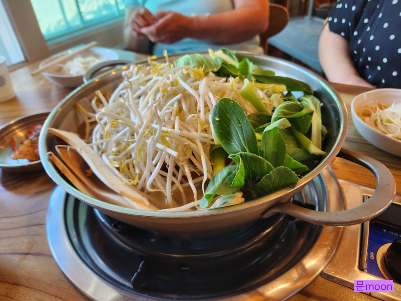 먼저 육수와 야채를 담은 전골냄비가 나왔습니다.