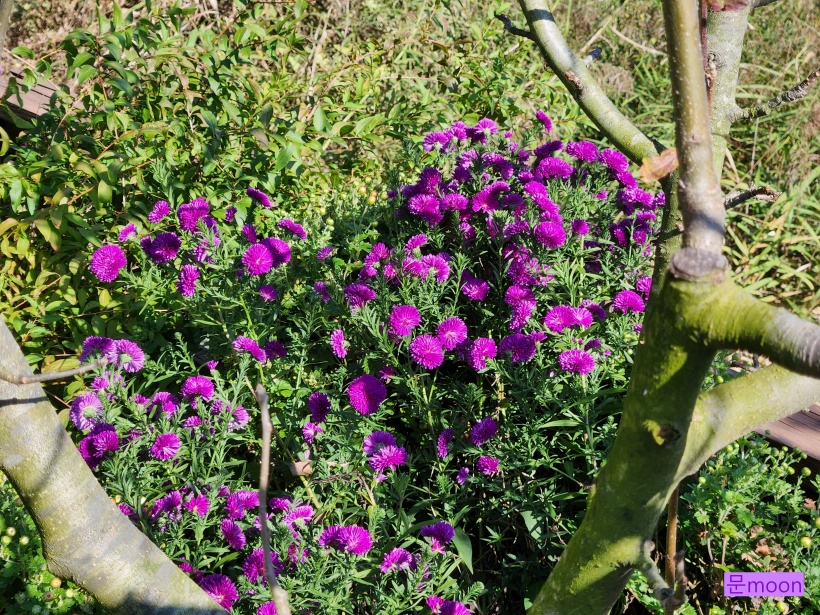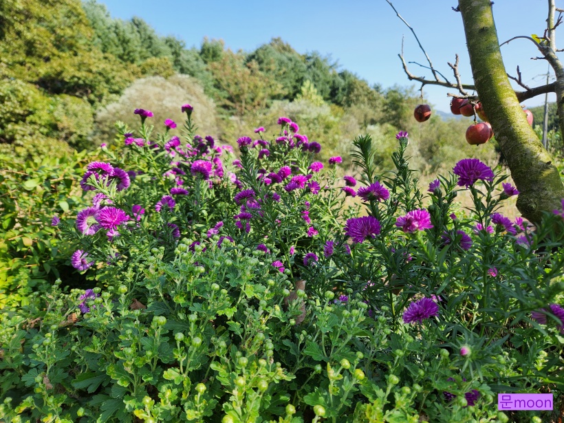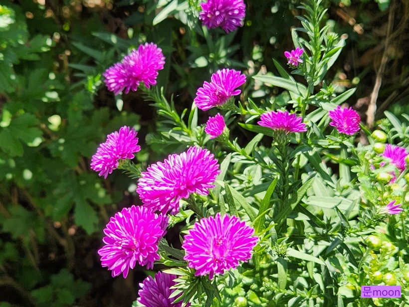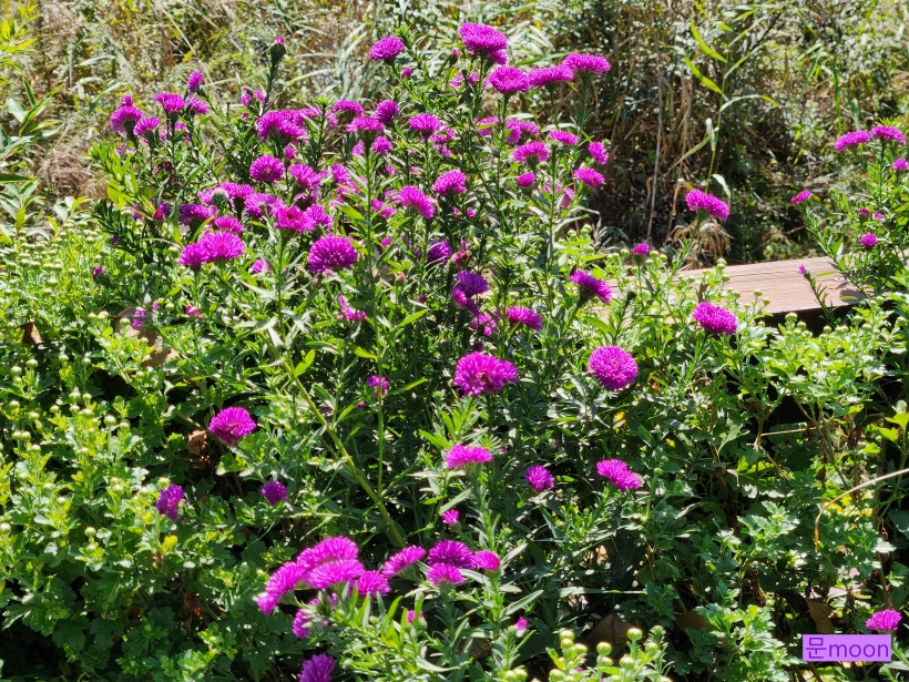 국화과 다년초인 보라 아스타가 한포트 심어준지 3년만에 꽤 번져 조그만 군락을 이루었습니다.