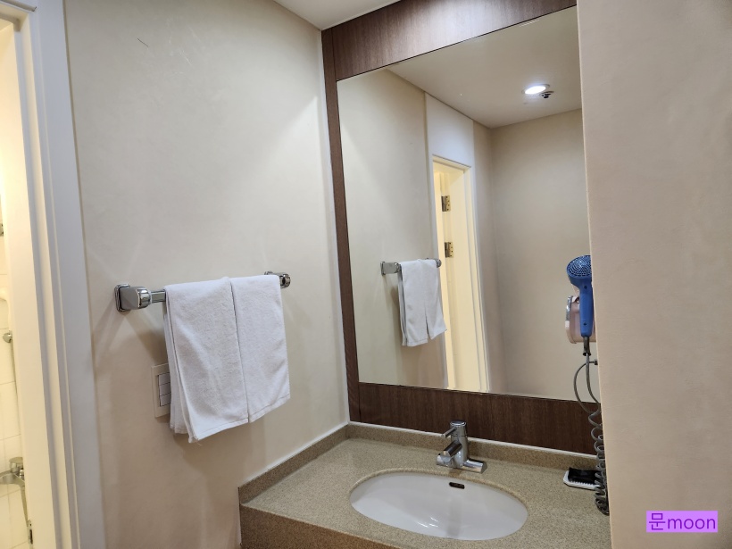 샴푸와 샤워젤이 비치되어있습니다. 타올은 넉넉히 받았습니다.