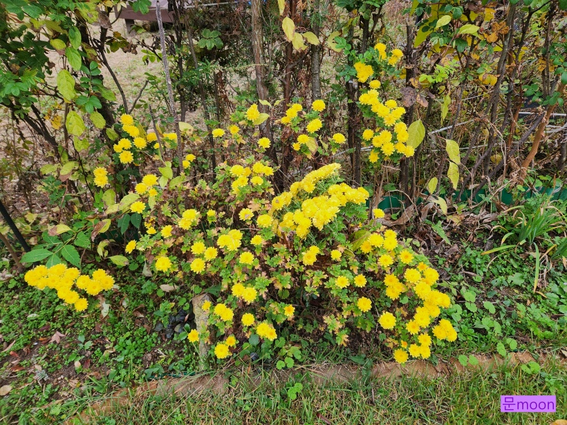 국화 중에서 노란소국이 제일 적응 잘하고 번식 잘해서 정원 여기저기에 자리잡고 있습니다.