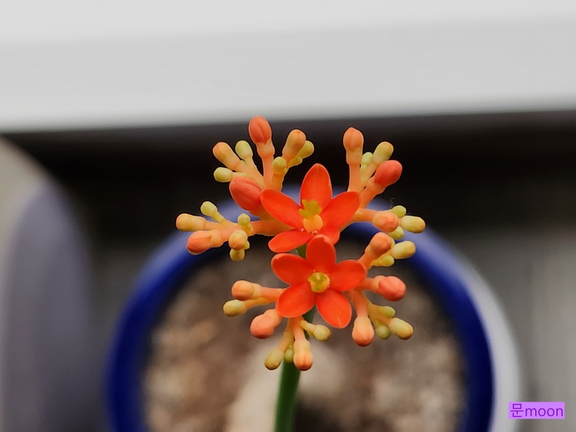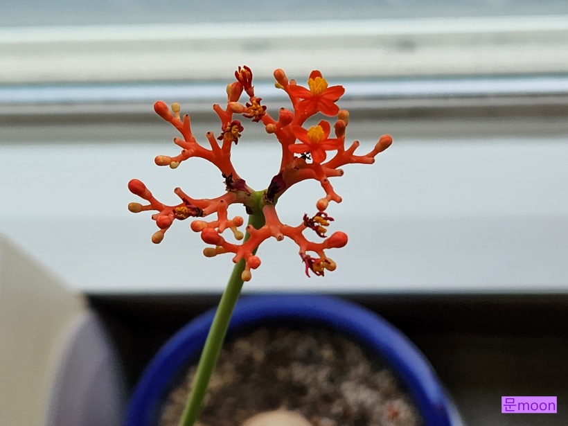 밑동이 호리병처럼 생기고 꽃이 산호처럼 핀다고해서 산호유동 이라고도 불리는 자트로파 포다그리카가