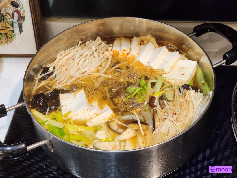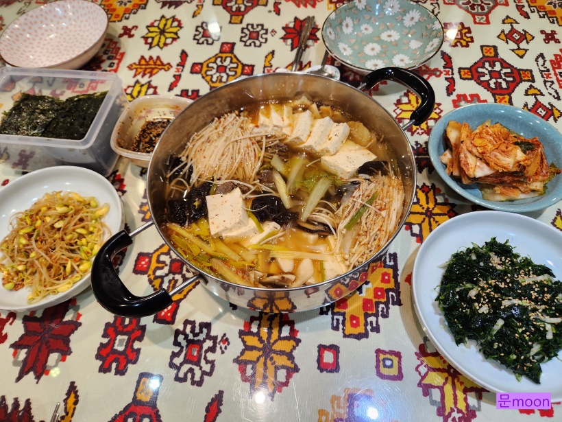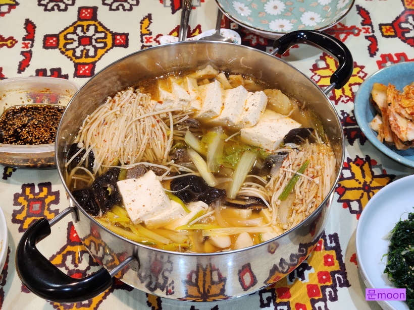연말연시 연휴에 애들이 양평집에 다니러왔을때 저녁식사에 내었던 두부버섯전골 입니다.