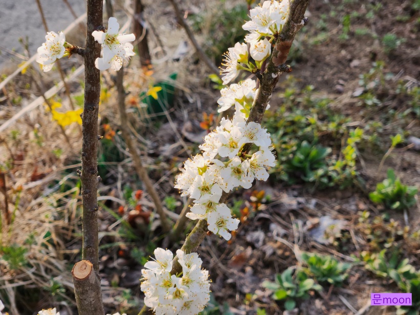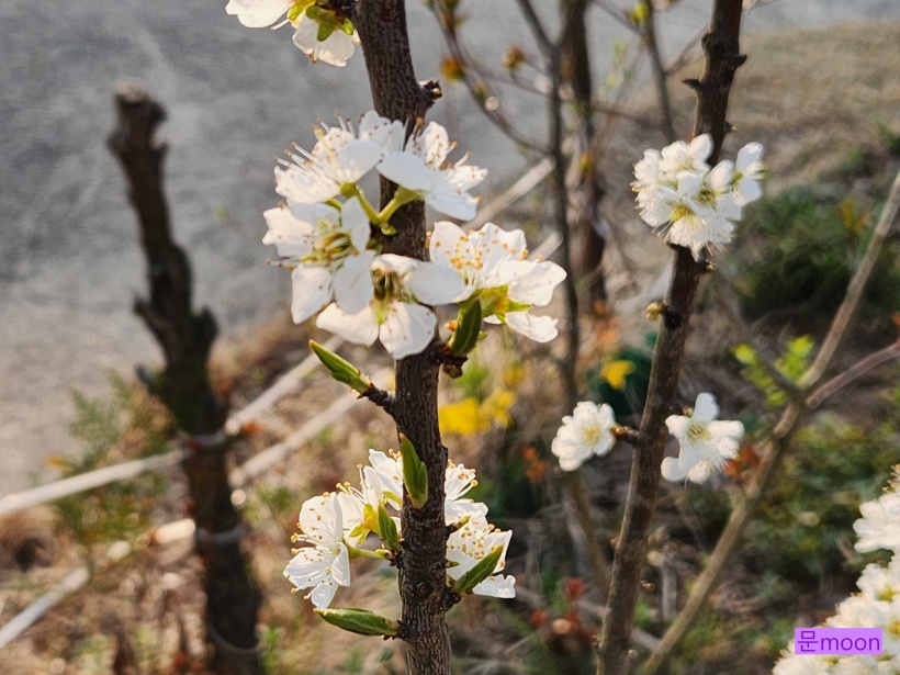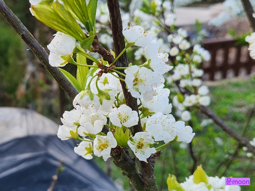 화원에서 피자두 라고해서 구매한건데 꽃색은 희고 이렇게 많이 뭉쳐서 핍니다.