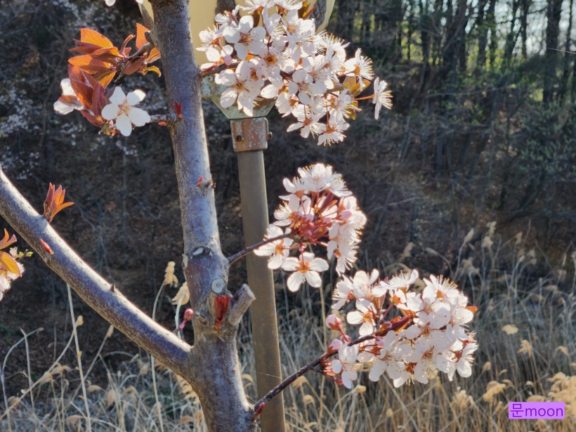 아래는 수피도 붉고 꽃도 분홍색인 자엽자두나무 입니다.