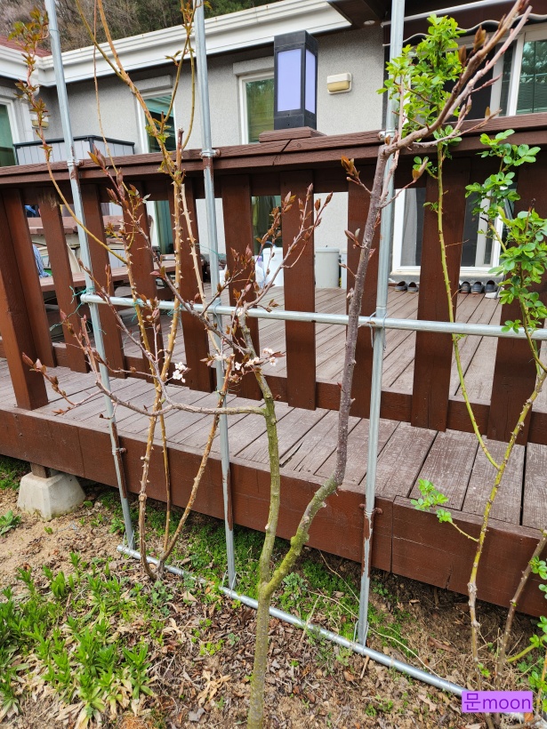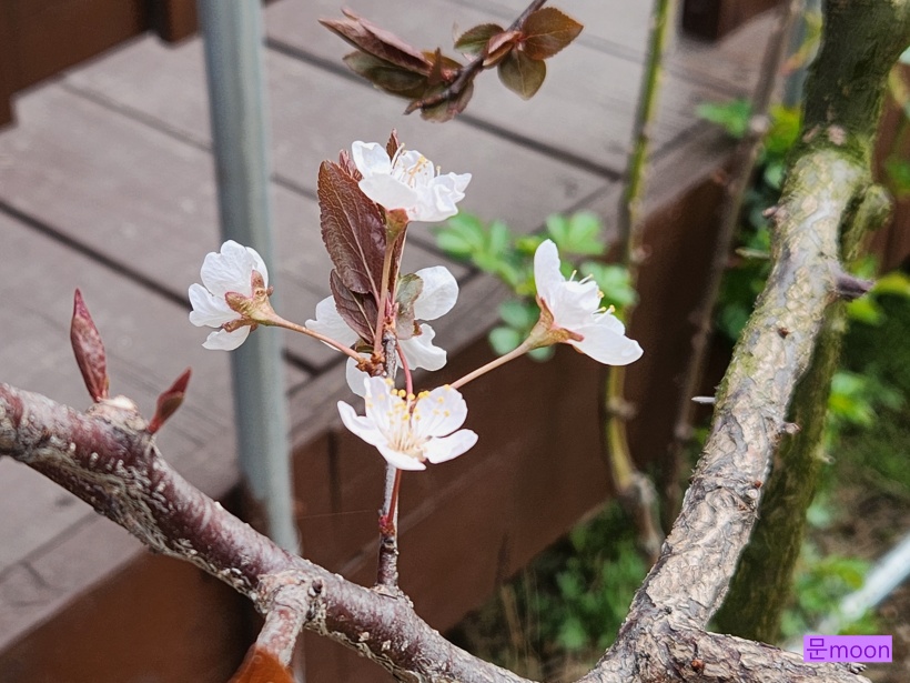 꽃색은 분홍꽃 2그루, 흰꽃이 2그루 인데 모두 속이 붉은 피자두 종류 인것 같습니다.