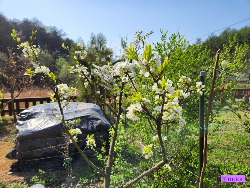 정원에 자두나무를 하나씩 심다보니 어느새 4그루가 되었습니다.