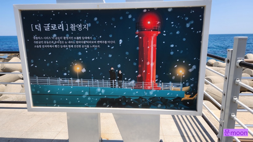 '더 글로리' 촬영지 라는 입간판이 있었는데 나중에 보니 소돌항 쪽의 빨간등대에서 촬영을 한것 같아요.